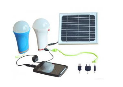 Mini solar lamps 5W with 2pcs LED bulbs high lumens with hook and mobile charging Images